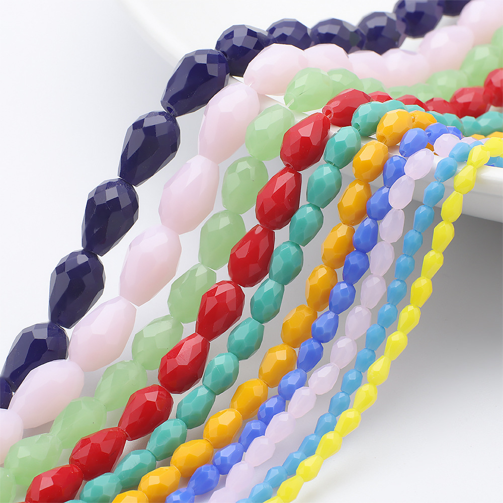 水晶切面珠中孔水滴水玻璃散珠串珠diy饰品手链材料配件现货批发
