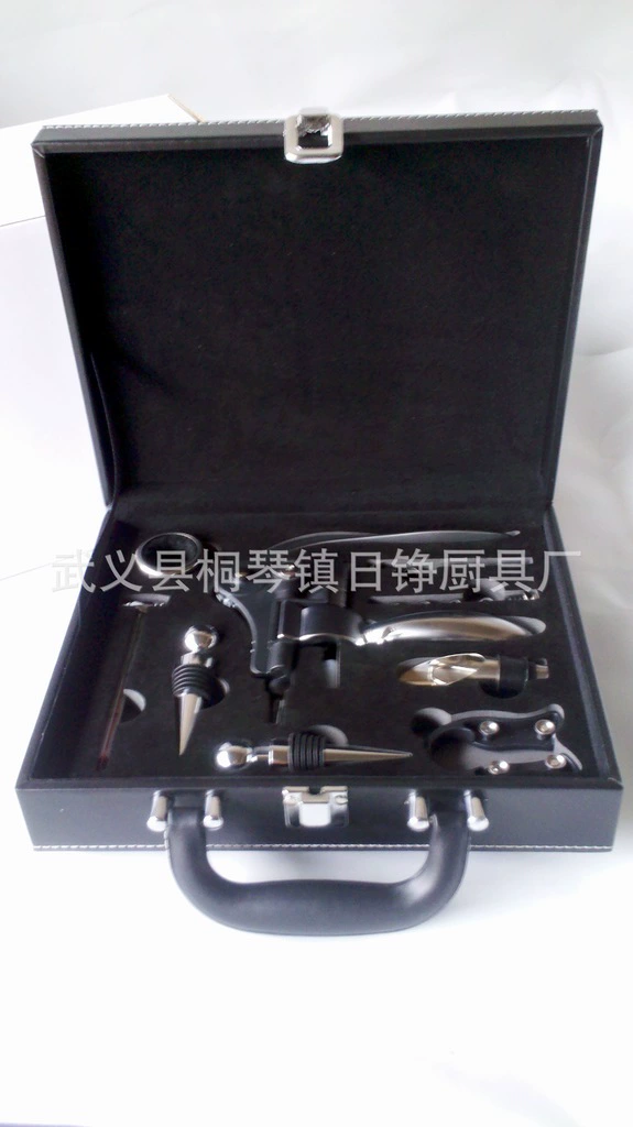 产品描述 | 1X1 不锈钢酒环 1x1 花梨木手柄的锌合金酒塞 1x1 花梨木手柄的不锈钢小刀开瓶器 1x1 花梨木手柄的不锈钢倒酒器 1x1 皮盒 | ||