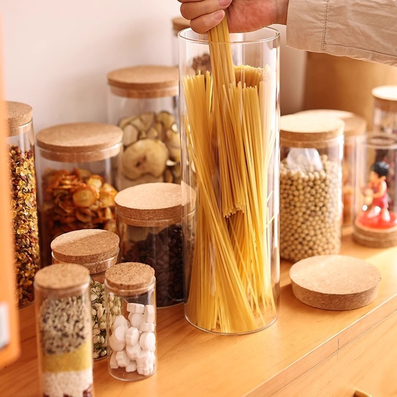 ガラス密封瓶 コルク蓋付き 卸売 直筒型 花茶瓶 茶葉瓶 キャンディー・穀物瓶 ガラス保存瓶