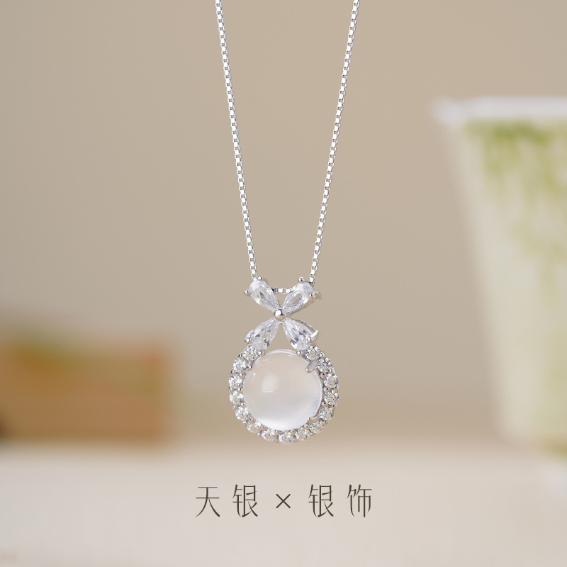 天銀S925純銀軽豪華ファッション花円環白瑪瑙ネックレス甘いアンドロメダ風鎖骨鎖首飾り