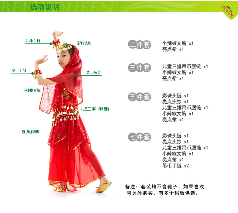 7件套:小辣椒上衣+亮点裙+腰链+头链+头巾+手链2只