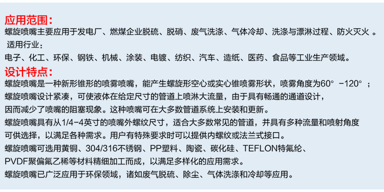 ゲイチアン2分3分4分ステンレススパイラルノズル、ステンレス冷却・除塵・脱硫・脱硝ノズル