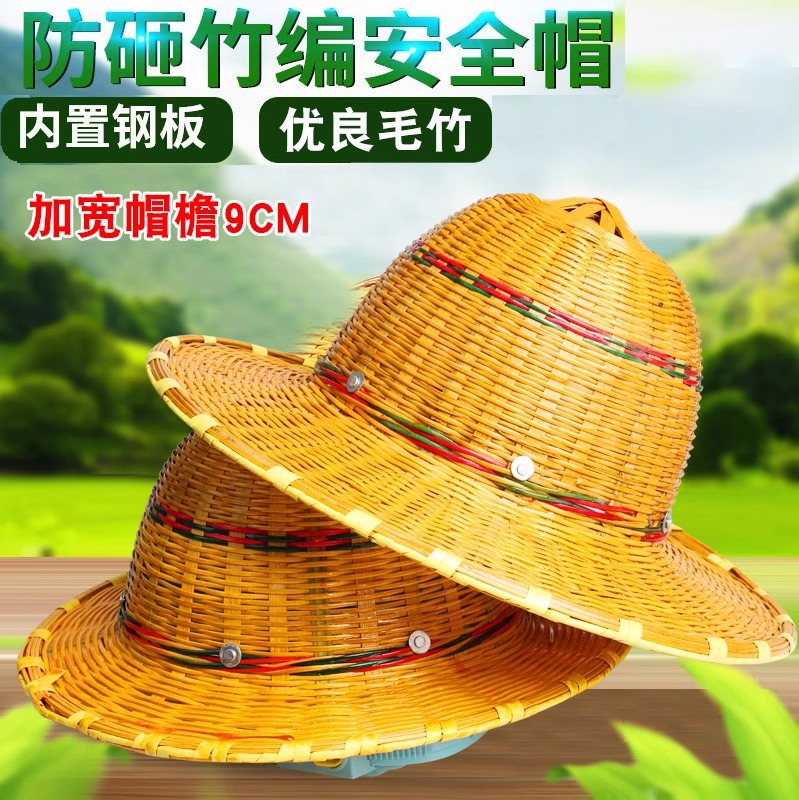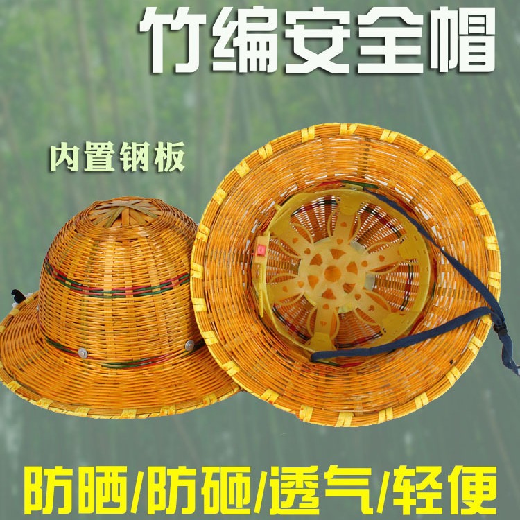 ヘルメット竹帽子夏建築施工防打帽子竹編み労働者日焼け止め通気労働保護帽子卸売り