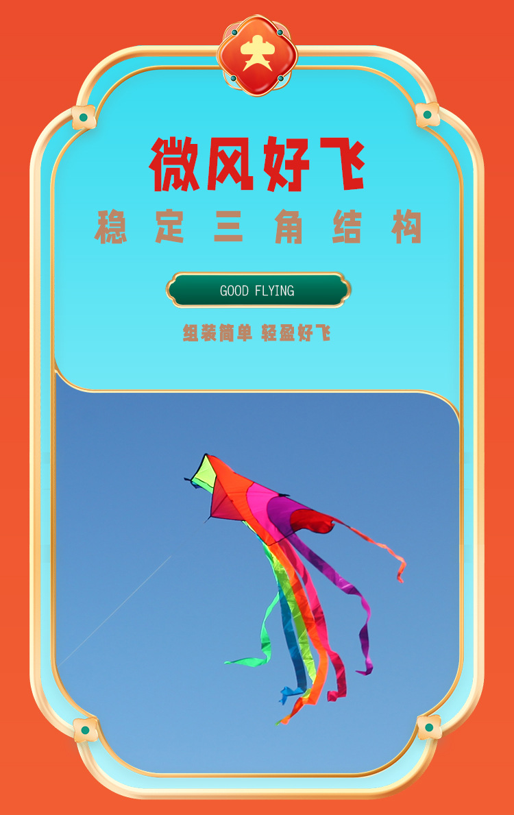 濰坊三角虹凧 多尾 カラフルな飛行七彩長尾凧 子供 大人 微風で簡単に飛ばせる 卸売