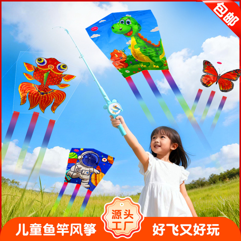 新しい子供用釣り竿凧、ダイナミックな小型凧、手持ち凧、男の子と女の子のための屋外凧玩具卸売