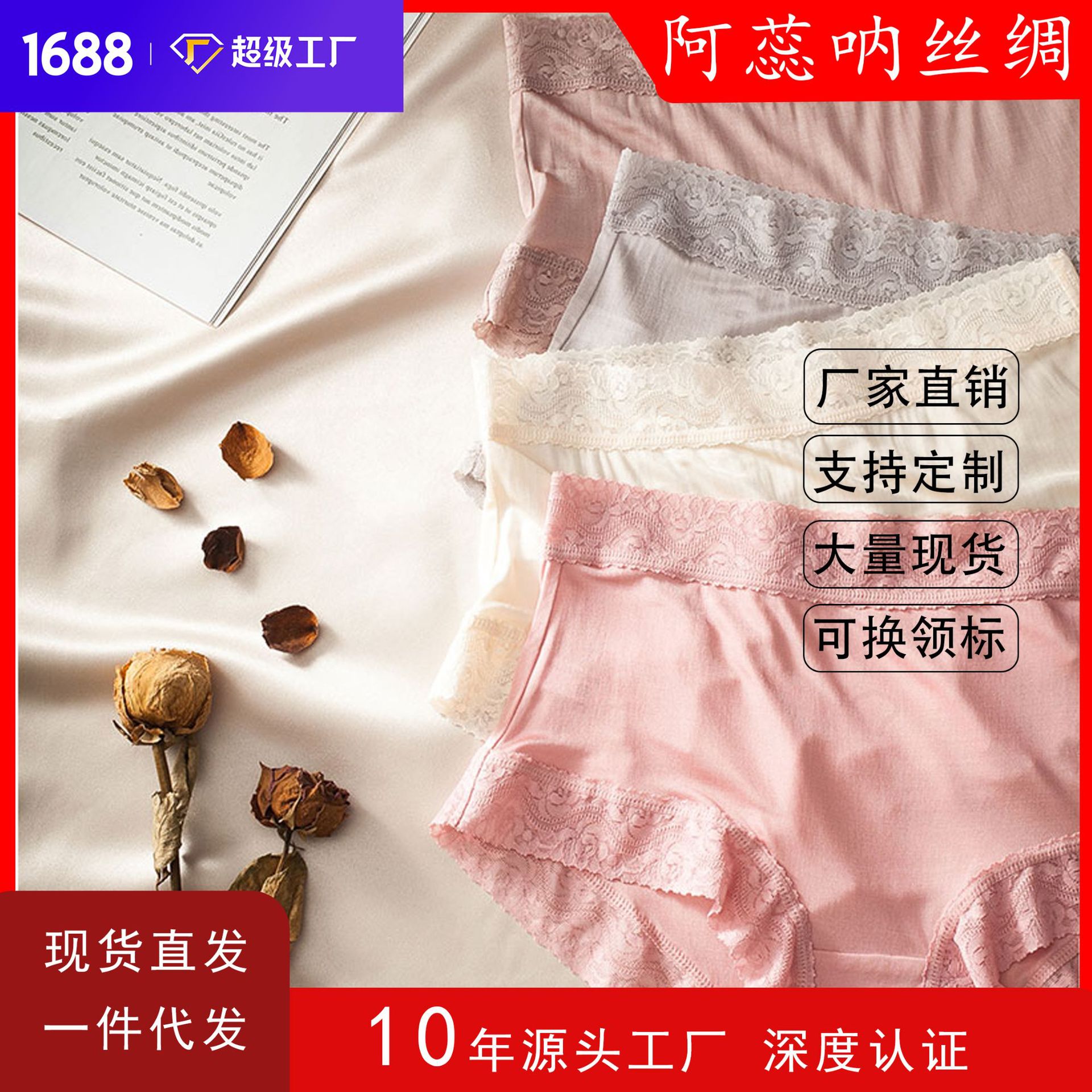 純粋な欲望日本のシルク下着卸売レディースシームレス通気性シルクミッドウエストショーツレースセクシーなブリーフ女性のための