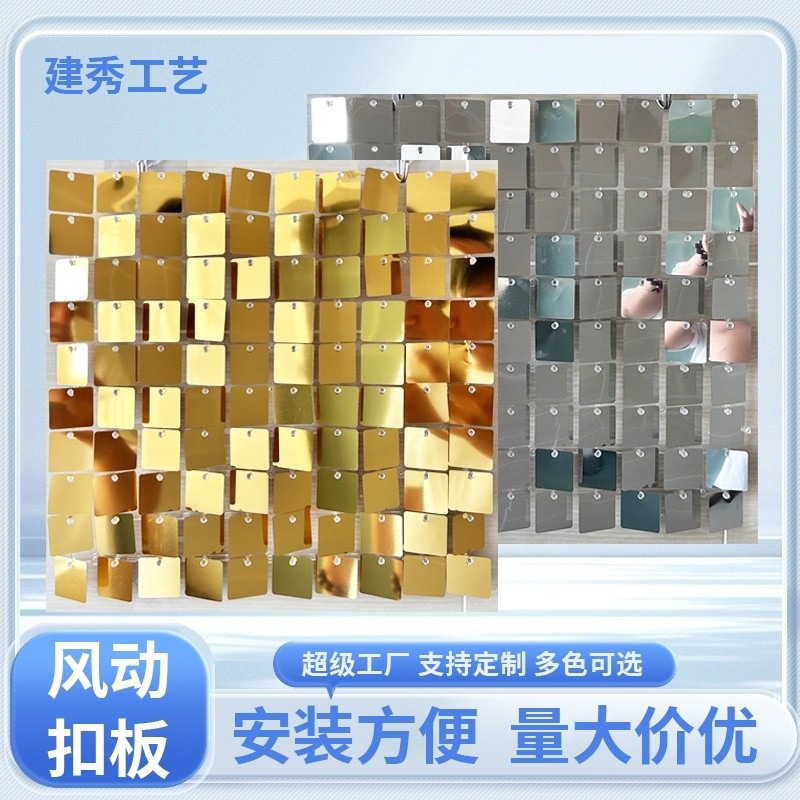 結婚式のミラー風動バックルプレートスパンコール誕生日アレンジメントパーティーステージ背景壁装飾プラスチック風動プレート