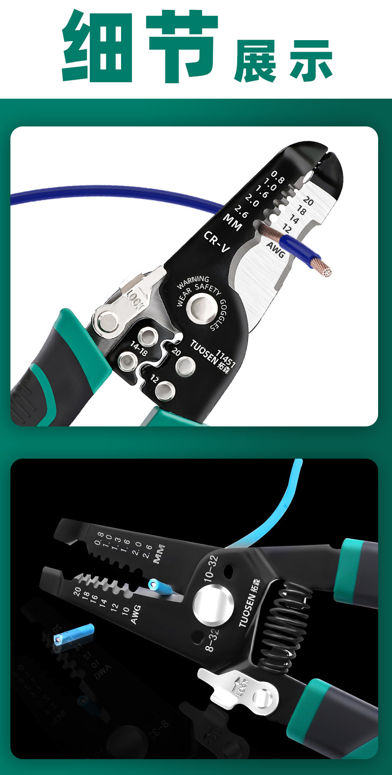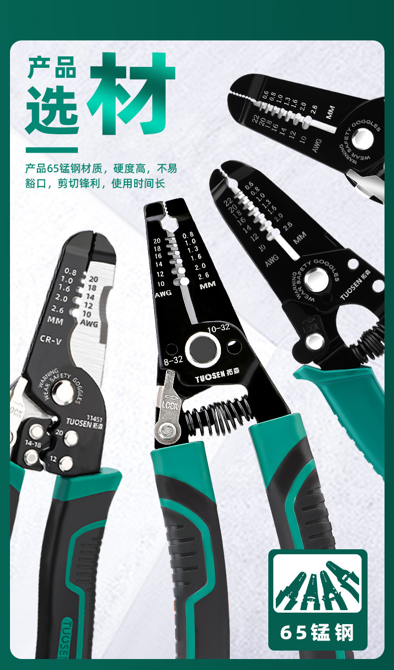 剥线钳 钳子 压线钳 电工工具 拓森 剪线钳 剥线钳 多功能 拓森五金工具 多功能剥线钳 钳类工具 剥线钳6寸  剥线钳6寸多功能 剥线钳子 剥线钳 电工