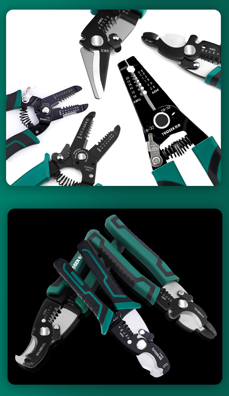 Tuosen ワイヤーストリッピングプライヤー電気技師ケーブルストリッピングナイフ多機能圧着オールインワンプライヤーストリッパー廃線剥離アーティファクト