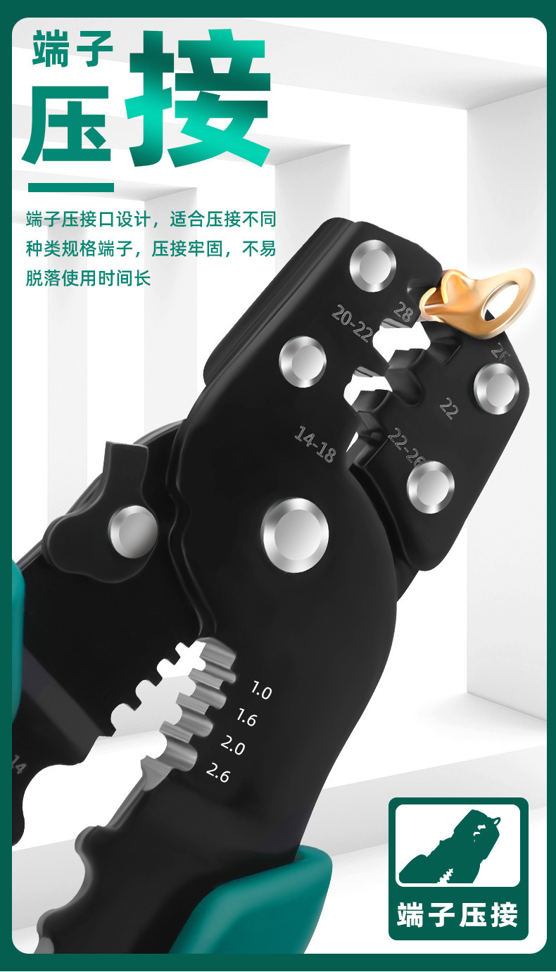 拓森工具8インチ圧線鉗子手動端子鉗子多機能圧脱鉗子剥離鉗子臨沂金物鉗子