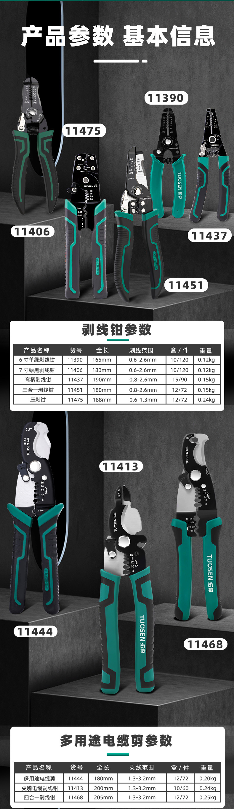 規格型番 99565、ワイヤーストリッパー-1,0.2 kg,11390、6インチ単緑剥ぎ、10/箱120/件、0.2KG,11406、7インチ緑黒剥ぎ、10/箱120/件、0.2KG,11444、多機能ケーブルは8インチ、12/箱72/件、0.26KG,11451、三合一剥離鉗子、一箱10個一個120個、0.2KG,11475、圧脱鉗子、12/箱72/件、0.253kg,11437、曲げ柄剥離鉗子、15/箱90/件、0.2KG,11413、尖口ケーブル剥離鉗子、10/箱60/件、27% KG,11468、四合一剥離鉗子、12/箱72/件、2.0 KG,11420、電気工事鉄の皮は切って、12/箱72/件、27% Kg,12052、2色黒ストレートブリキ切り、12/箱72/件、0.26kg,12069、2色黒エルボ鉄皮切り、12/箱72/件、0.26kg,99927、デュアルポート多機能ブレークアウトケーブルカッター、バルク、0.19kg