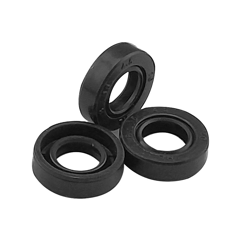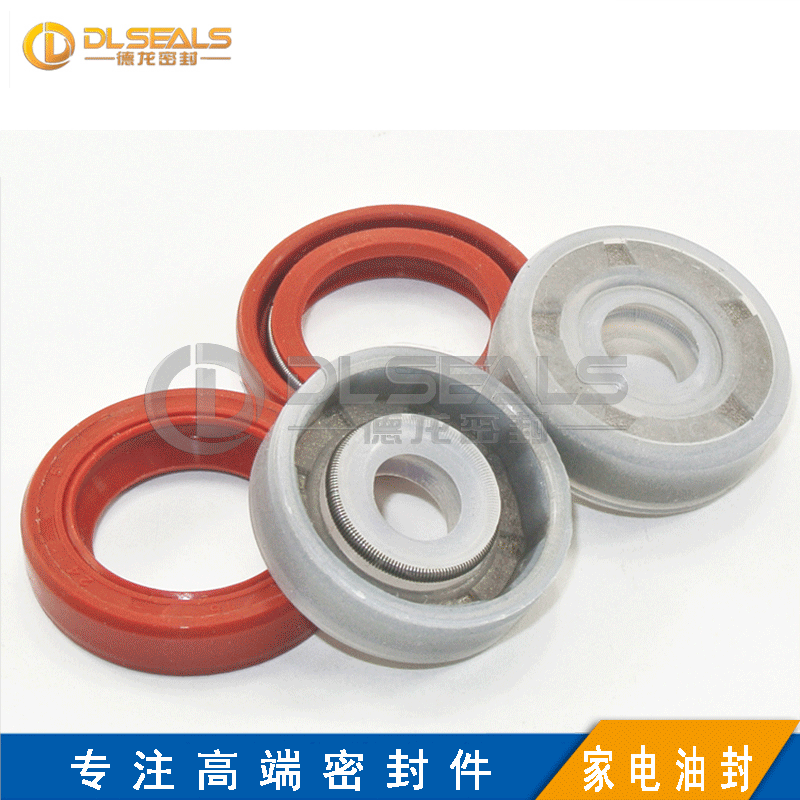 小家电油封结构有三部分组成:油封体、加强骨架和自紧螺旋弹簧。密封体按照不同部位又分为底部、腰部、刃口和密封唇等。通常,在自由状态下的骨架油封,其内径比轴径小,即具有一定的“过盈量”。 因此,当油封装入油封座和轴上之后,油封刃口的压力和自紧螺旋弹簧的 收缩力对轴产生一定的径向紧力,经过一段时间运行后,该压力会迅速减小乃至消失,因而,加上弹簧可以随时补偿油封自紧力。
