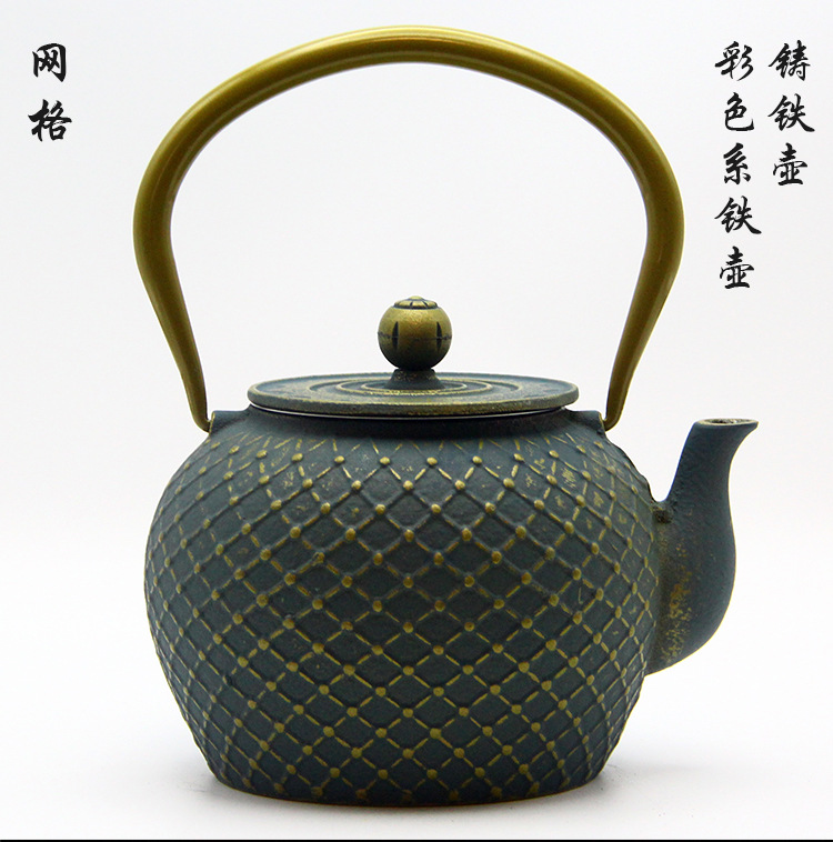 新しい中国式の鉄瓶の茶器のアイデアは外国貿易のカラーのティーポットの家庭の手で養生して水を煮てお茶の生鉄の壺を入れます。