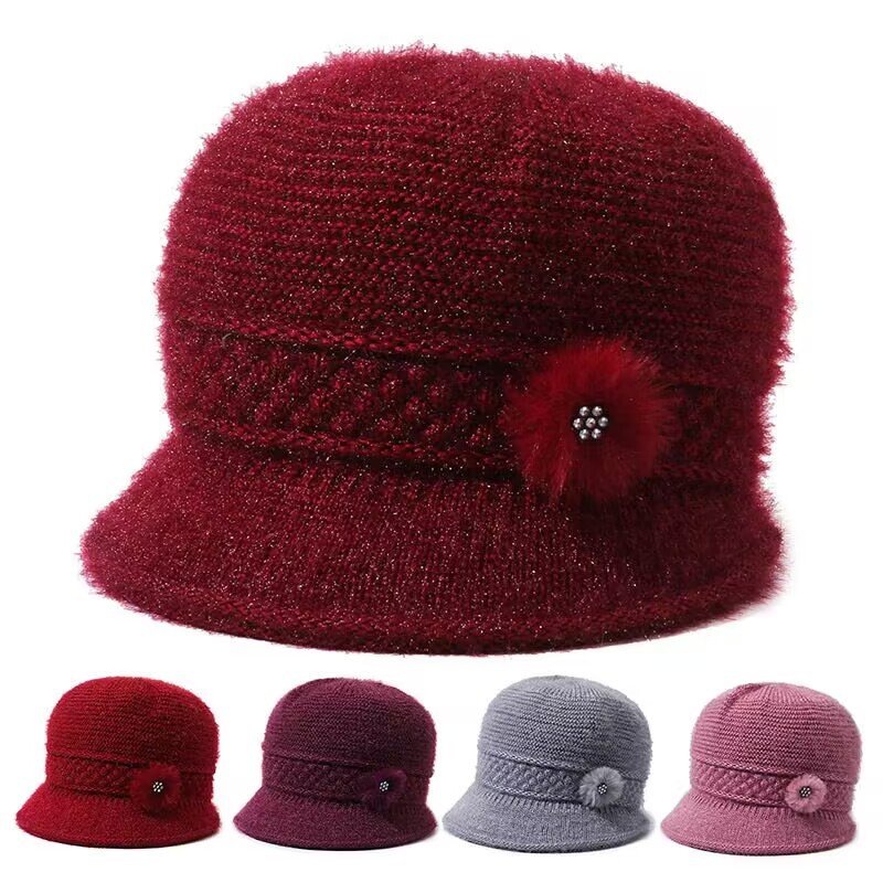 跨境中老年人帽子女秋冬季圆顶短檐奶奶妈妈保暖帽老太太针织盆帽