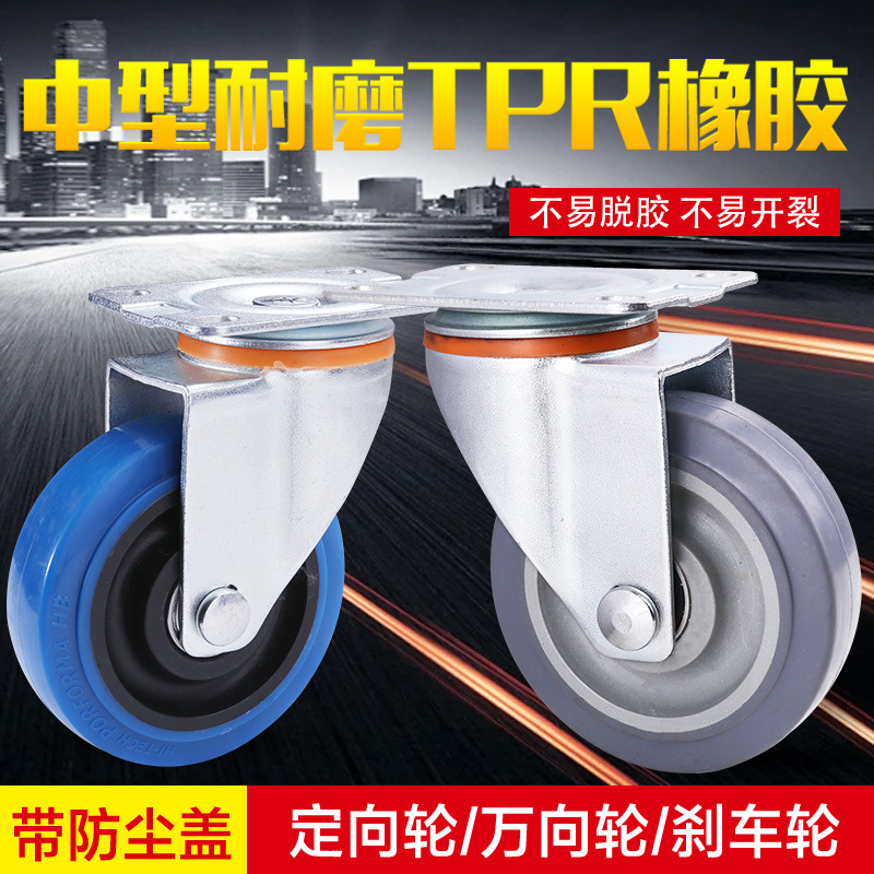 中型および重量級 TPR グレー ブルー フラット トラック ホイール 3/4/5/6/ 8inch 跡のない耐荷重ユニバーサル ホイール