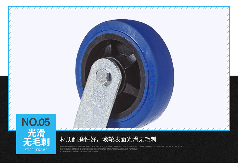 橡胶承重万向轮轮子聚氨酯pu静音推车脚轮4寸5寸6寸8寸工业定向轮