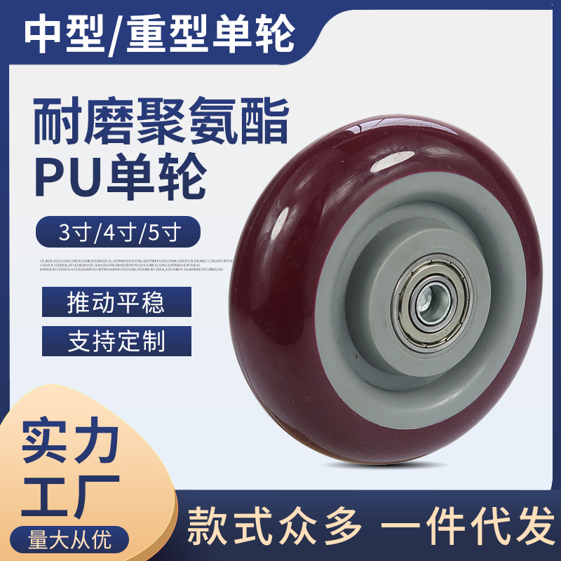 ポリウレタンホイール二重軸受puキャスター3インチ4インチ5インチ単輪片75*32mm耐摩耗車輪押し車輪