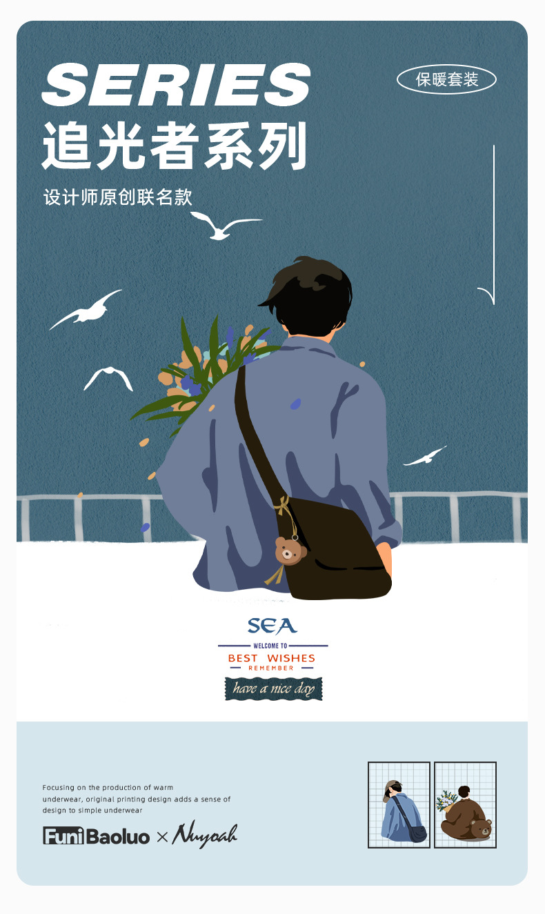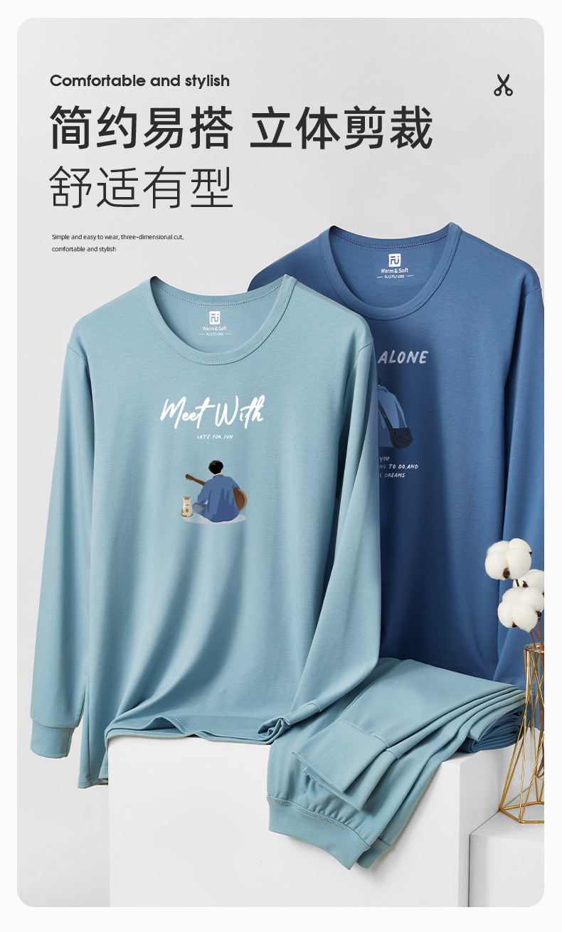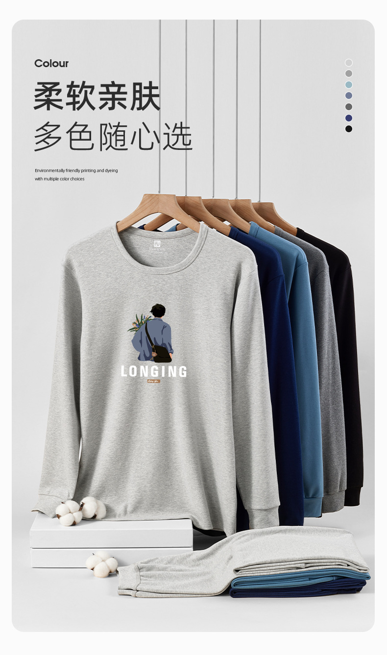 【追光者】男性純綿下着セット純綿修身秋衣秋ズボン底秋冬薄金保温内