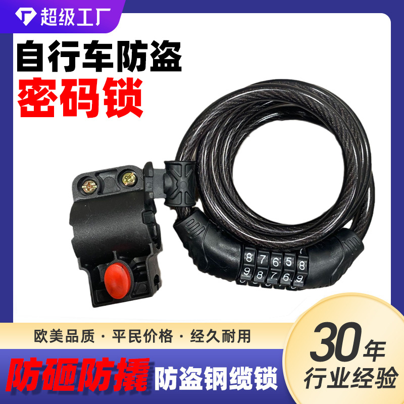 五位密码锁自行车锁加粗防盗钢缆锁山地车锁电动车锁门锁钢丝锁
