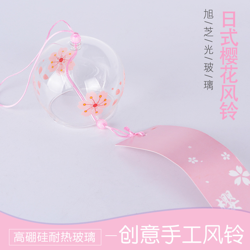 DIYクリエイティブギフト 日本風ピンク桜ガラス風鈴 吊り下げ飾り 誕生日プレゼント 装飾工芸品