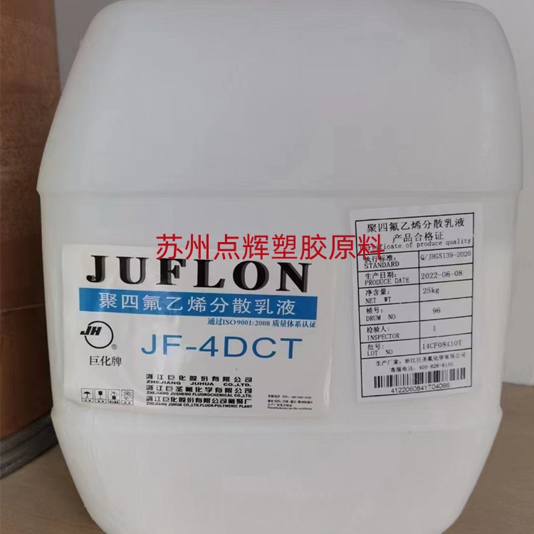 苏州点辉塑胶原料有限公司长期供应PTFE特种工程塑料巨化4dcd ptfe聚四氟乙烯水性乳液分散喷涂浸泡耐磨高温铁氟龙涂料 专业氟塑料供应商