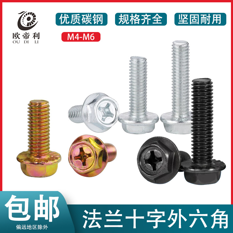 黑色外六角十字法兰螺栓带垫机螺钉防松法兰面螺丝M4M5M6M8供应链