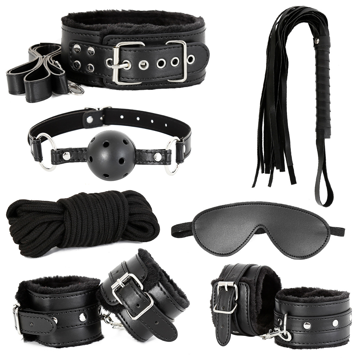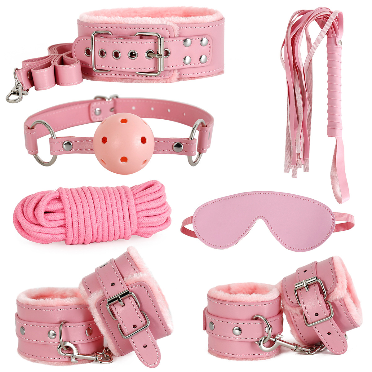 趣味セット黒パイル手錠ピンク7点セットメーカー皮革7点セット5メートル成人保健用品