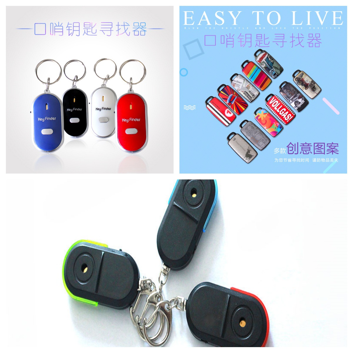 本产品是出口转内销新品,产品包含发射及接收,可挂在腰带或者背包上,钥匙扣与钥匙挂在一起。不钥匙不见了的时候,吹声口哨,钥匙扣就会发出“滴滴”声,根据声音可轻松找到钥匙。本产品无误报,距离远,电池寿命长,是粗心大意者的好帮手。