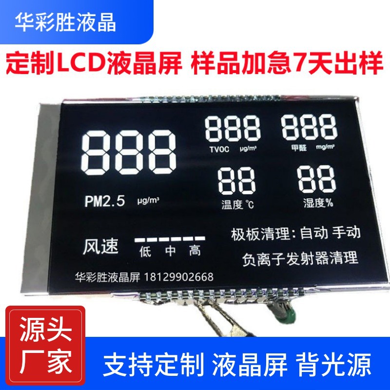 LCDメーカー直販VA液晶スクリーン車載計器盤8桁ディスプレイブラックLCDセグメントディスプレイ