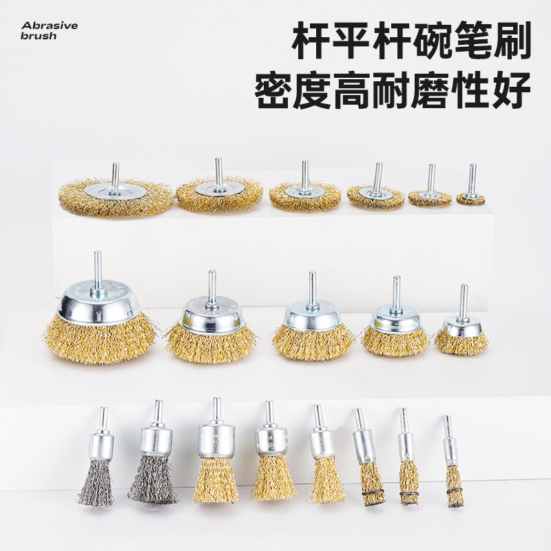 T型钢丝轮圆柄金属除锈抛光打磨头平行钢丝轮笔形碗形黄丝钢丝刷