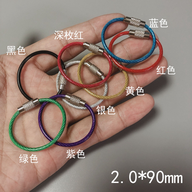 2.0 * 90mm太めワイヤーロープリング自動車キーホルダーリングカラー便利カラーリング
