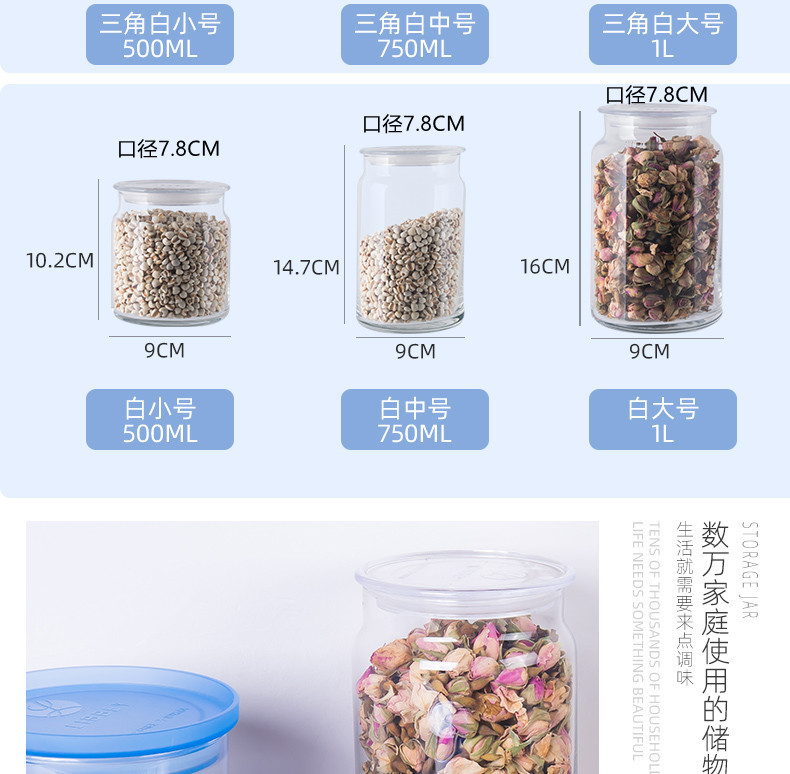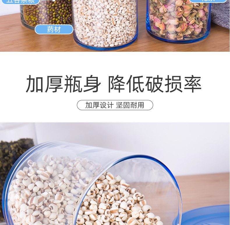楽美雅ガラス貯蔵タンク透明家庭用キッチン密封香料ナッツ五穀雑穀収納ケース