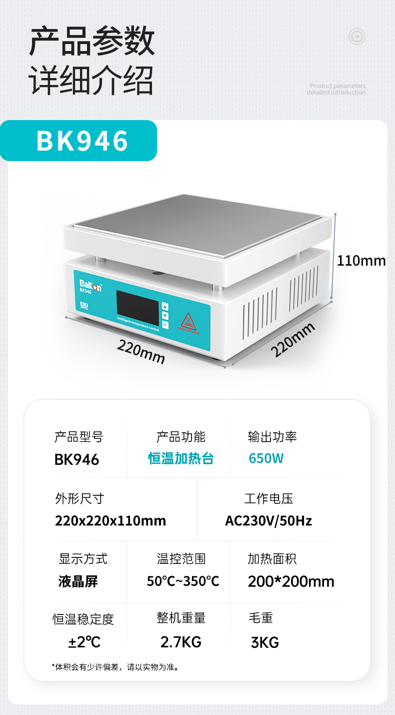 白色BK946スマート加熱プレート予熱ヒーターテーブルマイクロコンピューター電熱プレート恒温卸売加熱プレート