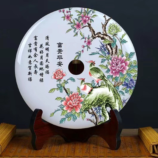 天然白翡翠翡翠安全バックル装飾品カラフルな彫刻和氏璧クリエイティブホームリビングルームの装飾工芸品ギフト
