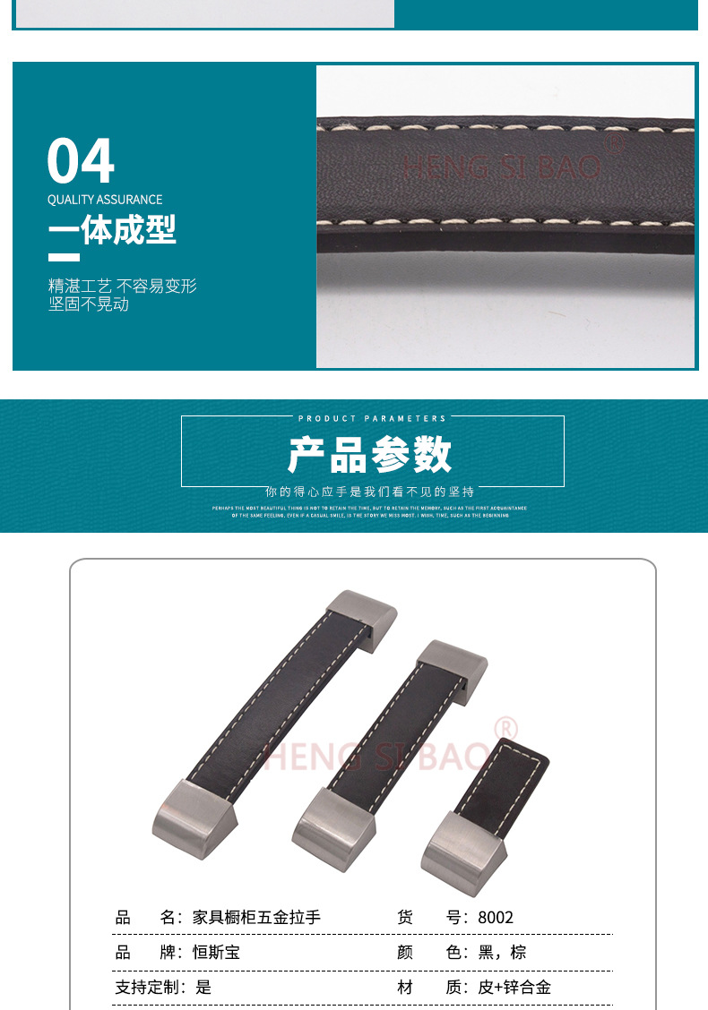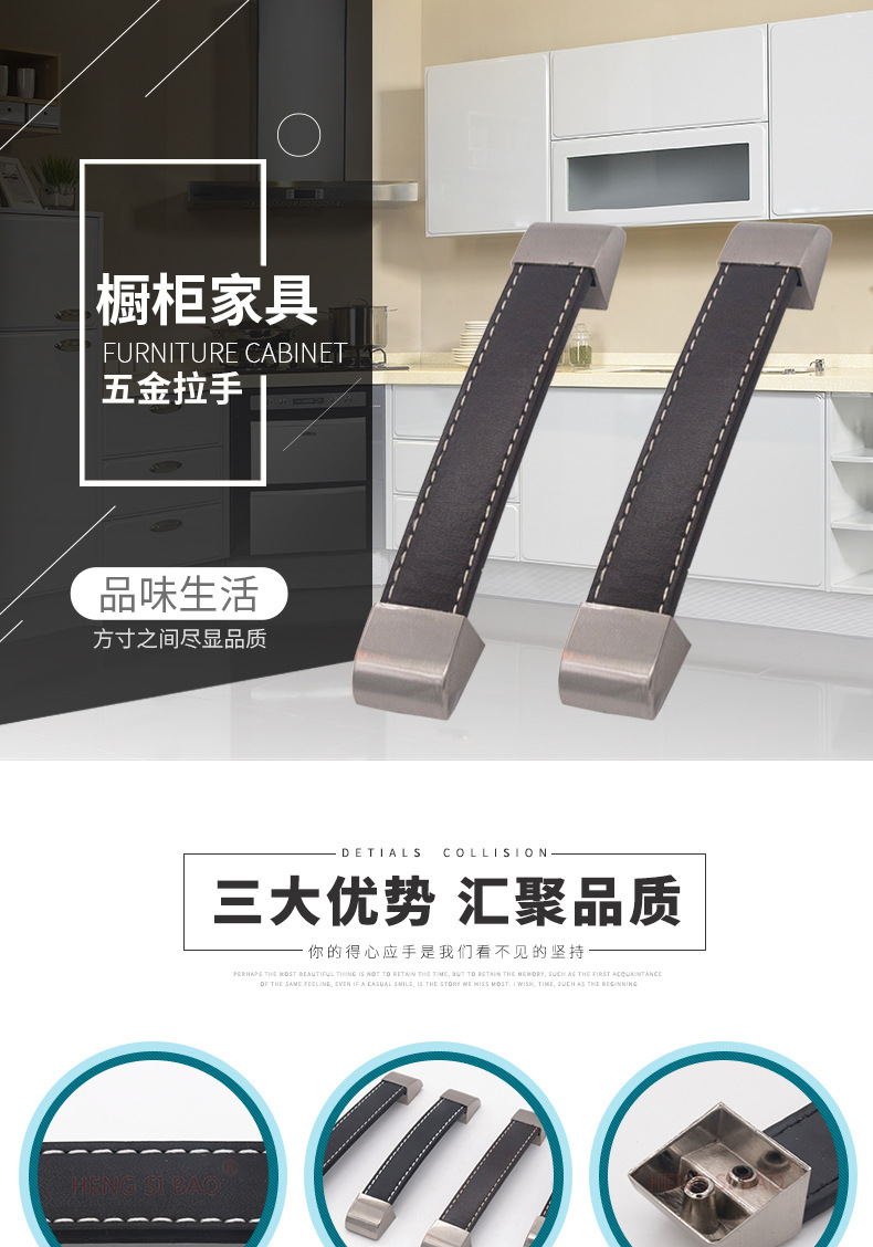 跨境热销款皮革拉手锌合棕色铜拉丝浴室抽屉床头柜橱柜衣柜门把手