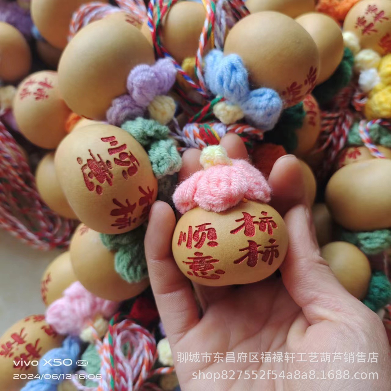 精選天然手撚小葫芦帯蛇口烙画十二生肖ストラップ置物工芸小プレゼント卸売り