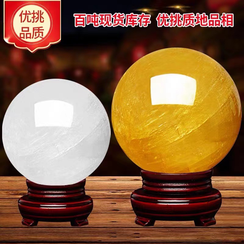 メーカー卸売り天然黄水晶玉白水晶玉置物天然原石磨き工芸品置物