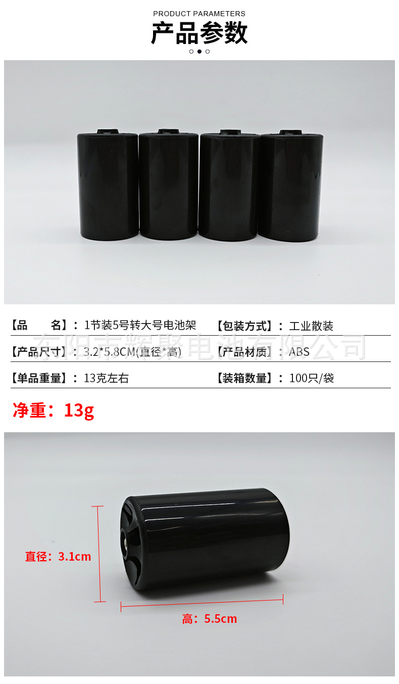 金属製パッド AA-C5型から2号電池への変換用電池コンバーター(黒、ノーブランドロゴ)の卸売供給