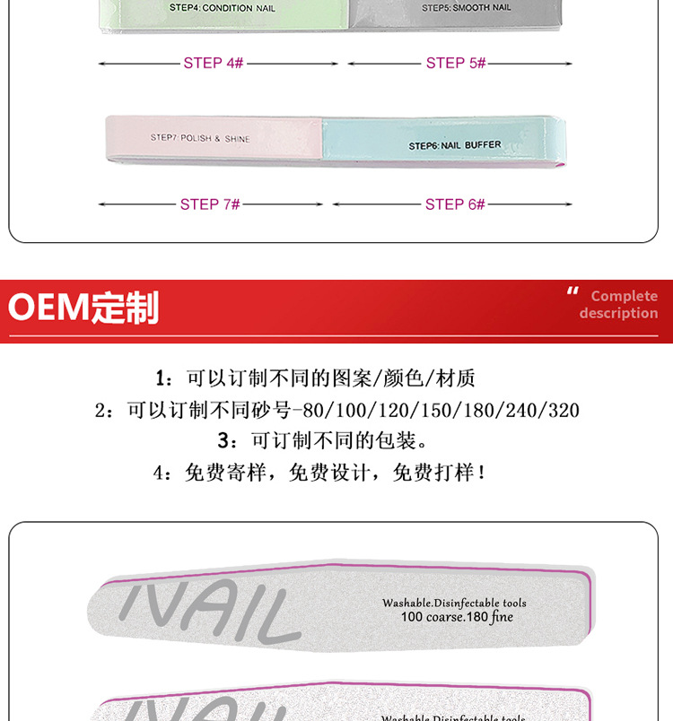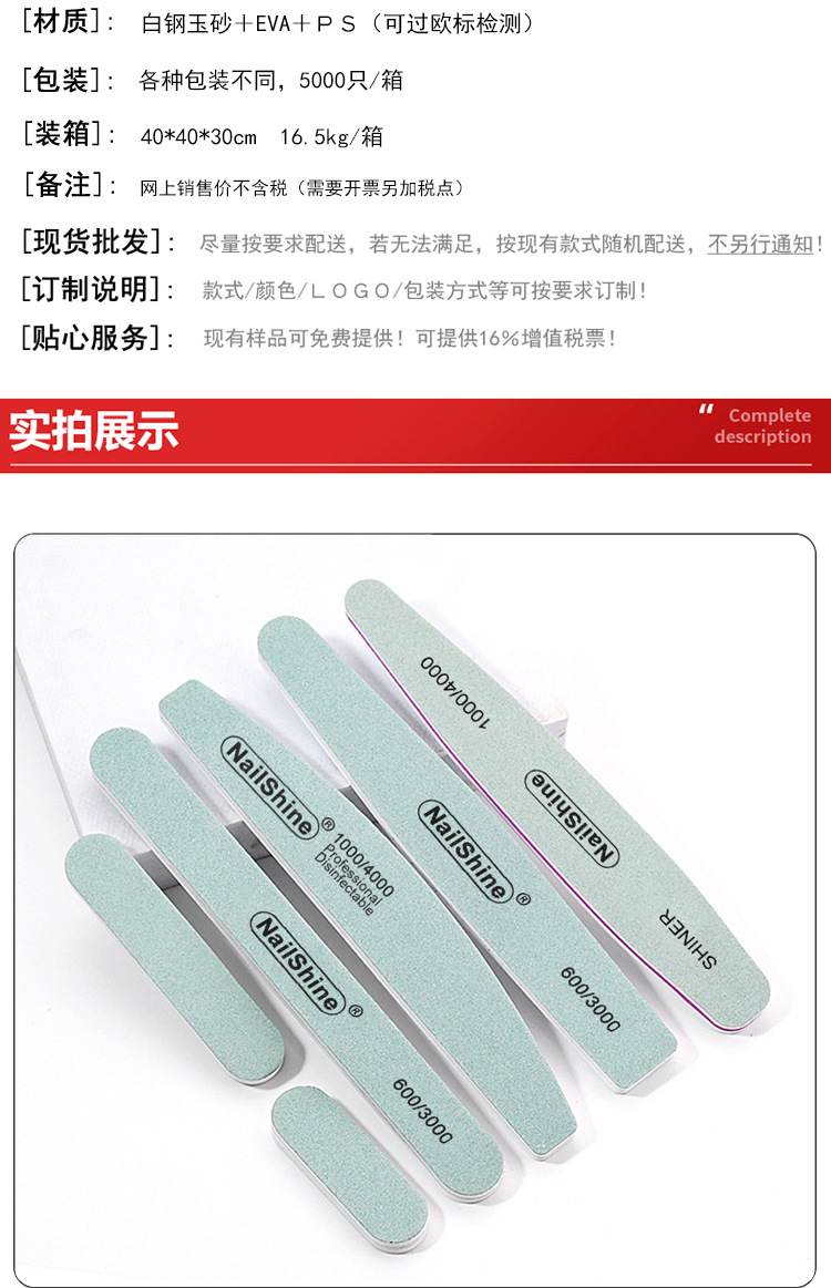 国境を越えたnail shine半月形スポンジ研磨バーを研磨して両面爪やすりをこすります。