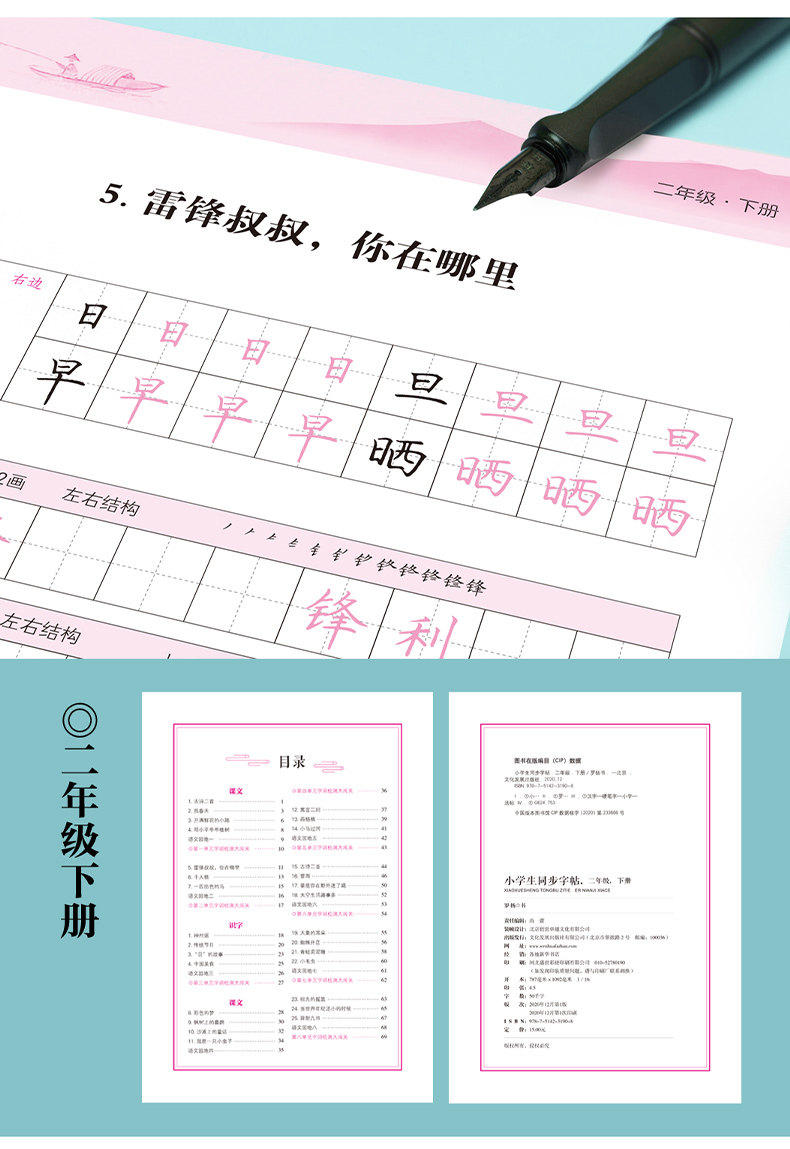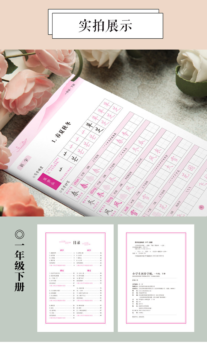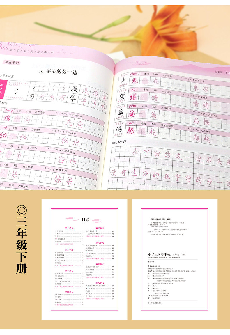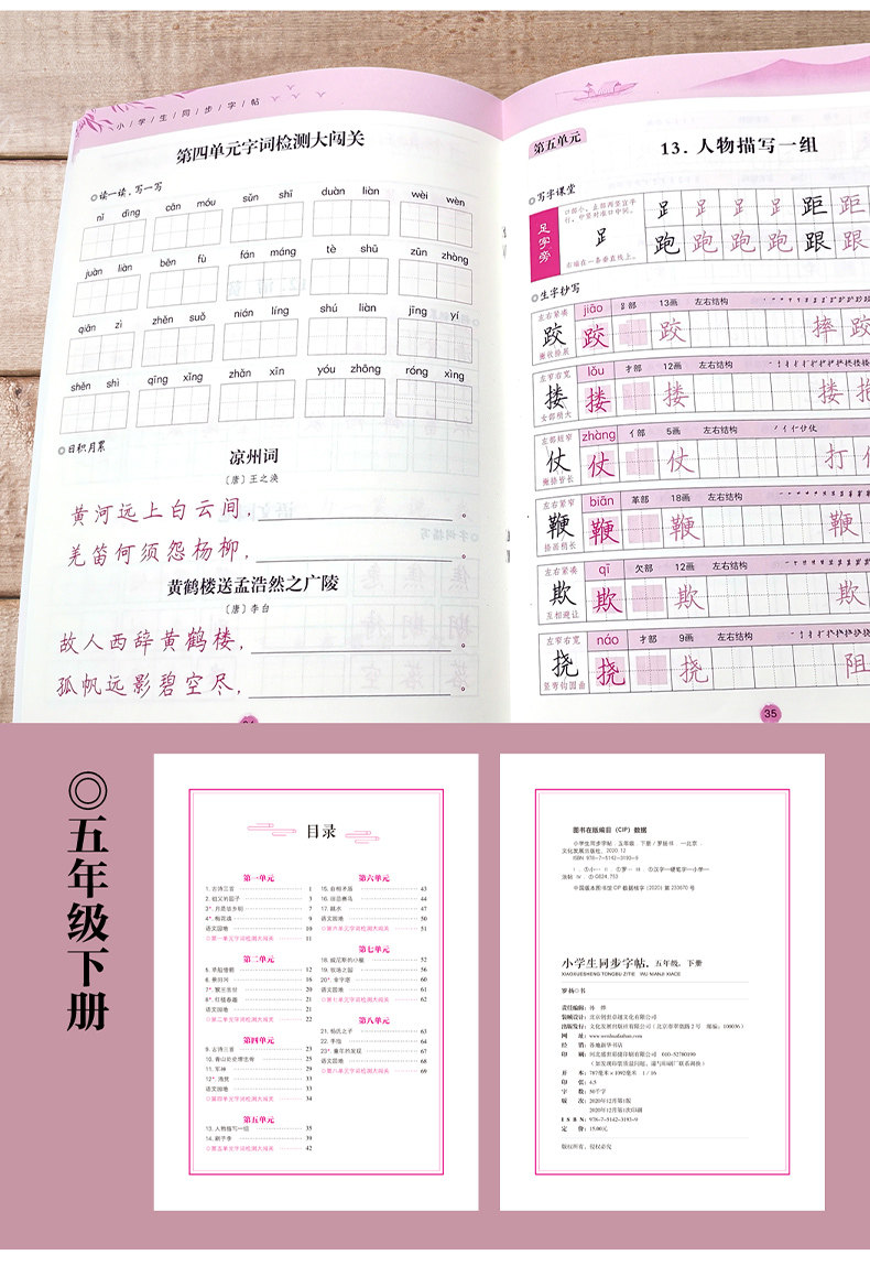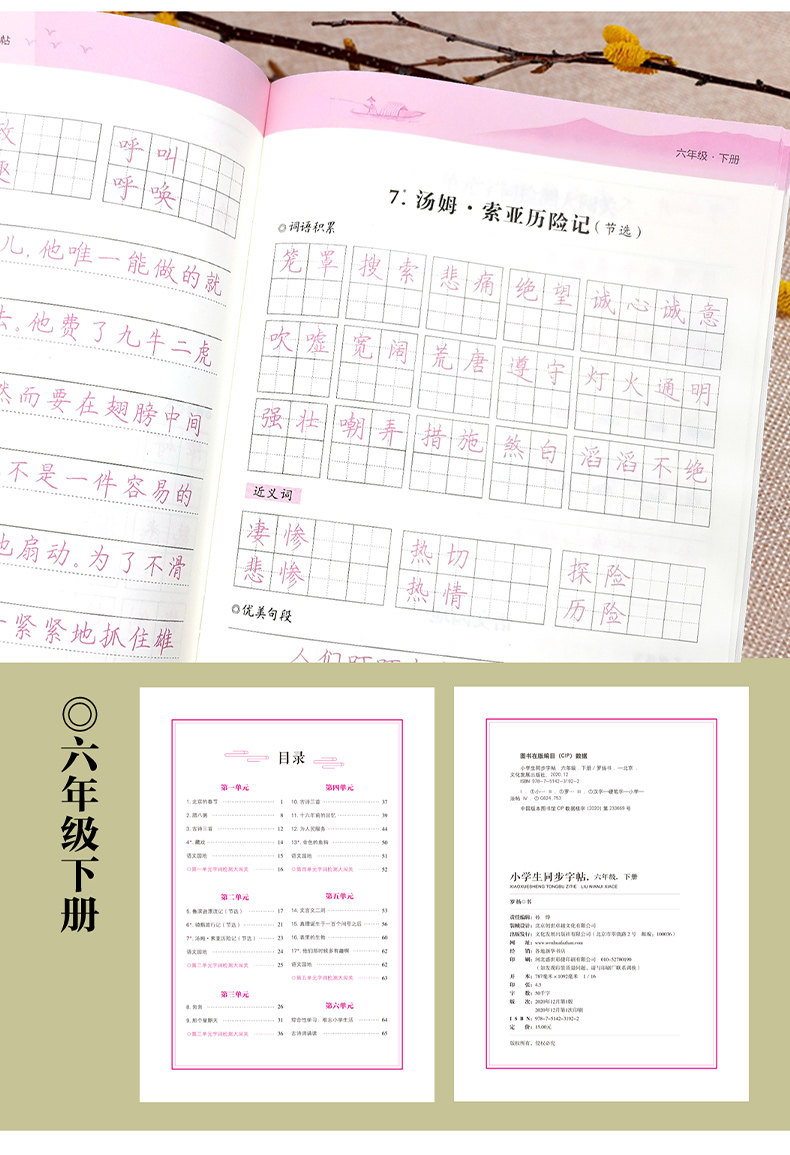 小学生向け中国語習字ステッカー 123456 年級上下巻 人民教育出版教科書 同期コピーブック 赤本