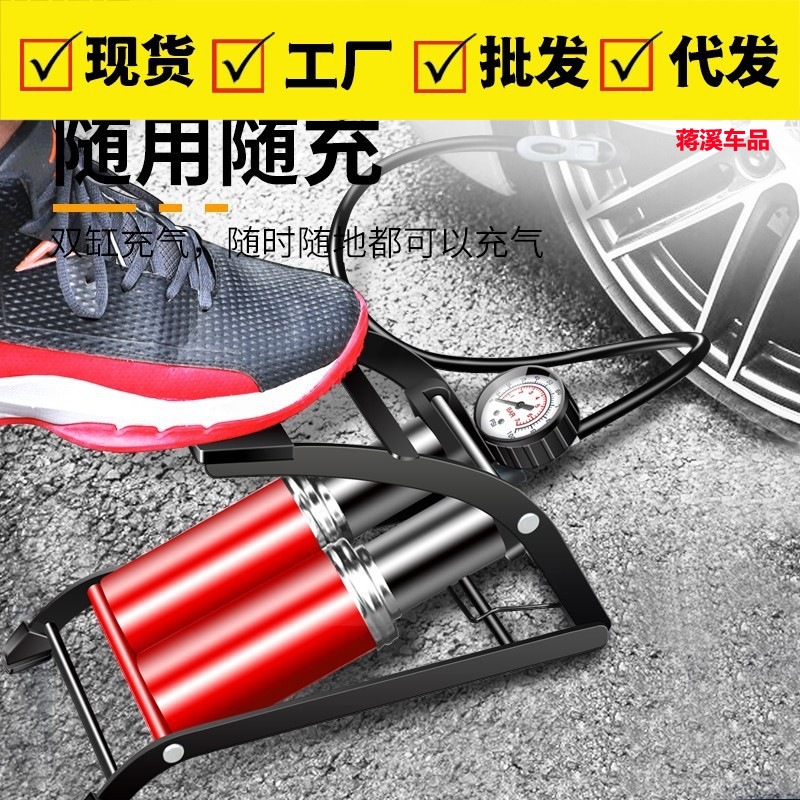 。 试试这种脚踏打气泵吧,它特殊设计的气嘴锁,能把各种气嘴紧紧包