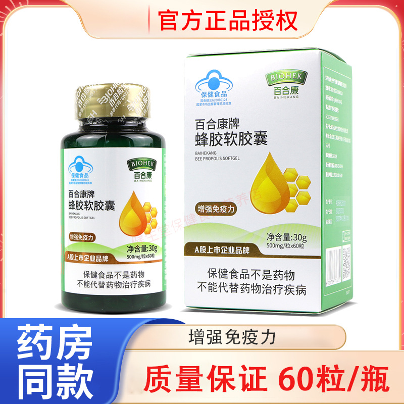 百合康牌蜂胶软胶囊增强免疫力60粒成人中老年免疫力低下批发正品