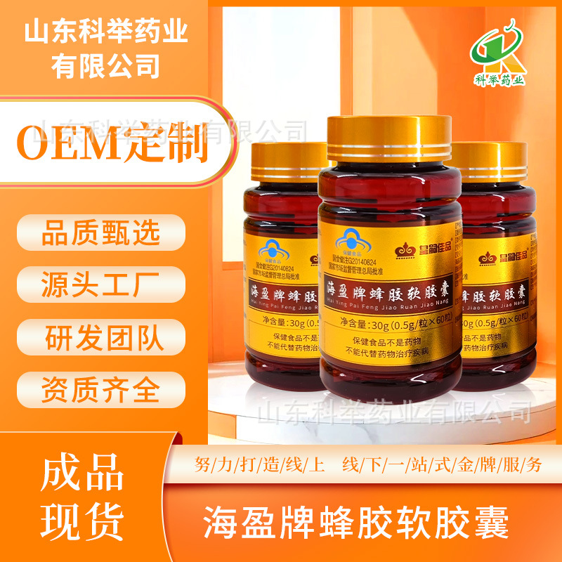 正品蜂胶软胶囊厂家总黄酮6.0高含量海盈牌蜂胶60粒/瓶私域线