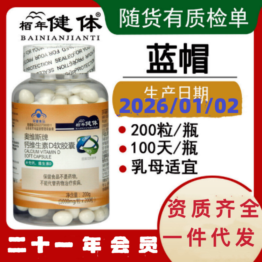 中高年向け液体カルシウムソフトカプセル 200カプセル 高齢者用ビタミンd3 無糖