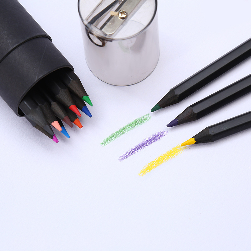 メーカー直販7インチ黒木12色鉛筆学生絵画スケッチ写真文房具用品