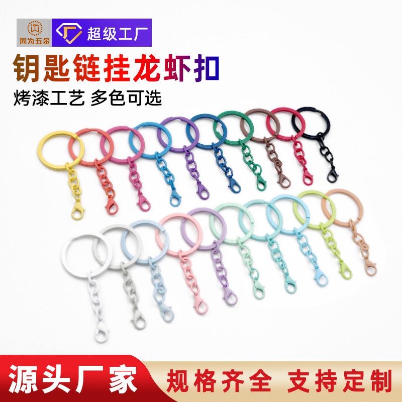 彩色烤漆钥匙圈链挂龙虾扣diy公仔玩偶玩具挂件小饰品钥匙扣配件