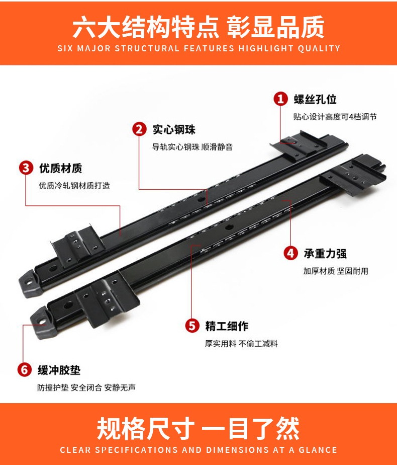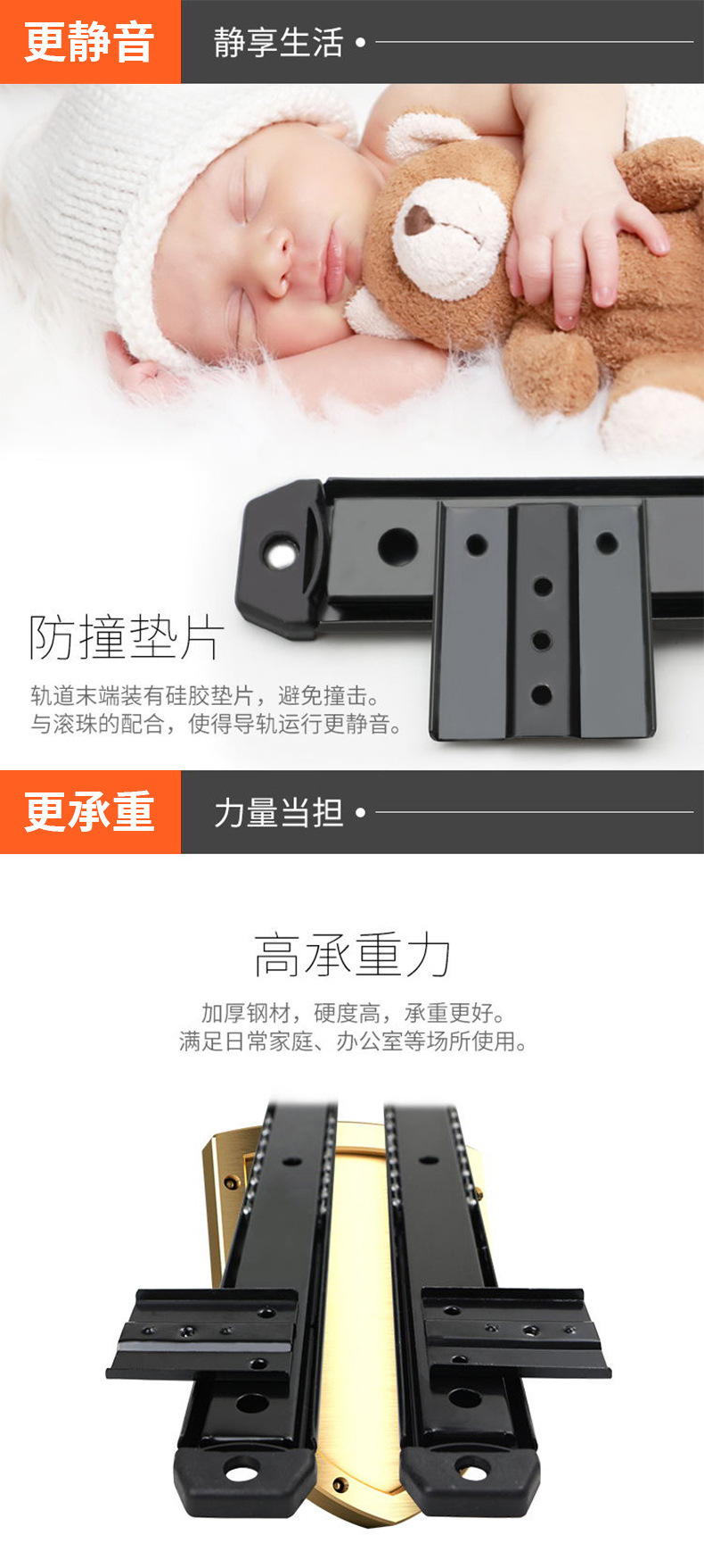 金栄達静音引き出しスライドレール冷間圧延鋼三節レール45三つ折りボールレール家具スライドレール卸売り