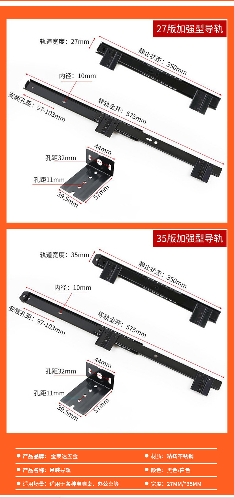 金荣達 厚型キーボード専用スライドレール パソコンデスク用ボールガイドレール 幅35キーボードレール 工場直販
