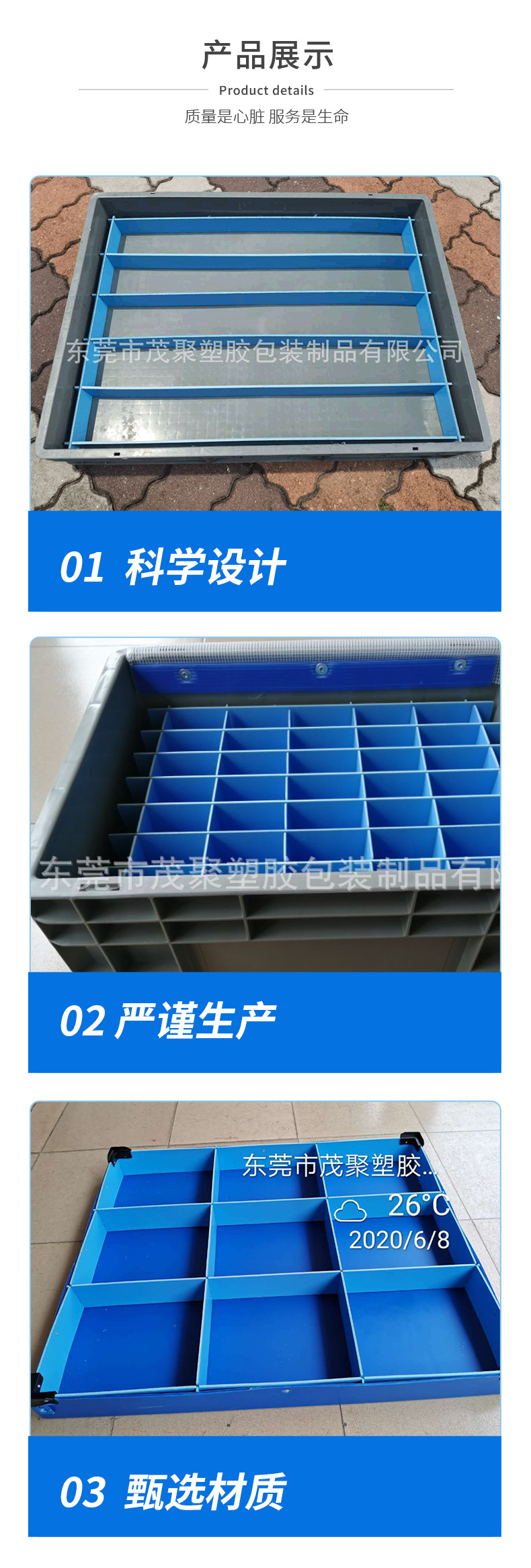 メーカー卸売り8格プラスチック角盤プラスチック分格小ゴム箱320*210*30mmブルーゴム盆