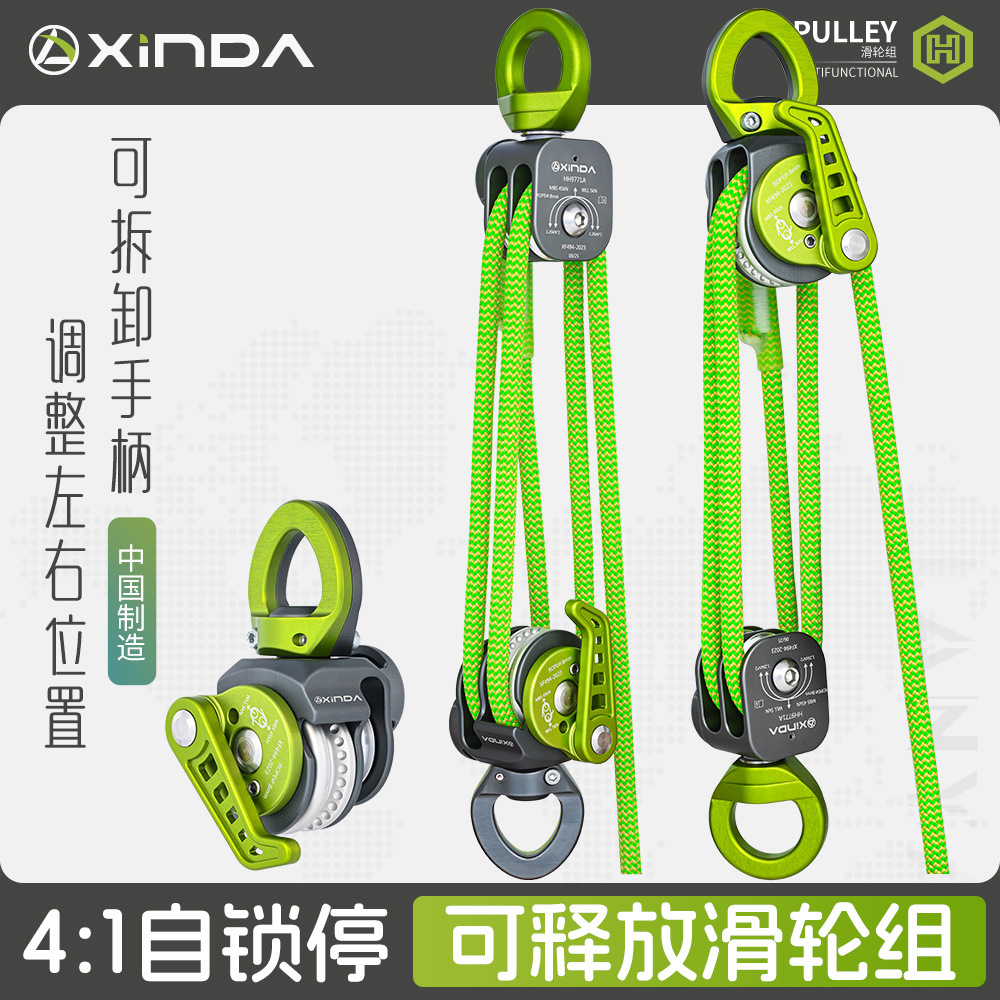 欣达可释放双向倍力滑轮系统4:1高效提拉运转救援吊装省力滑轮组